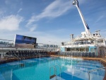 Огромная плазменная панель на верхней палубе у бассейна, на которой демонстрируются фильмы и спортивные передачи.
