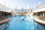 В каюте: • Балкон с мебелью для отдыха• Две кровати, трансформируемые в кровать размера queen-size• Ванная комната с душем• Шампунь, кондиционер, лосьон для тела• Полотенца из 100 % египетского хлопка• Спутниковое ТВ• Холодильник• Фен• Сейф• Шкаф для вещей• Телефон• Письменный стол• 110 В розетка, работающая на переменном токе со стандартными входами США• Ежедневная уборка номера• Дополнительная ежевечерняя подготовка ко сну • Шоколад на подушках • В некоторых каютах есть пульман для 3 и 4 гостя